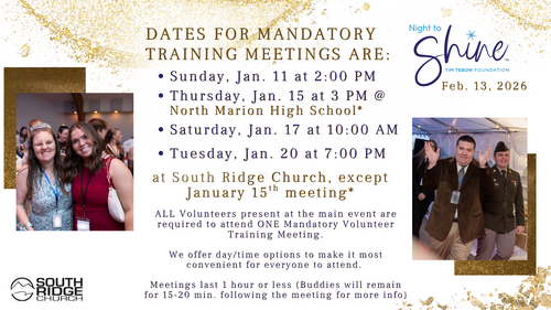 Thank you for the donations that have made it possible to provide love and care to our Honored Guests at Night to Shine 2025! We appreciate your continued support for the 2026 event!